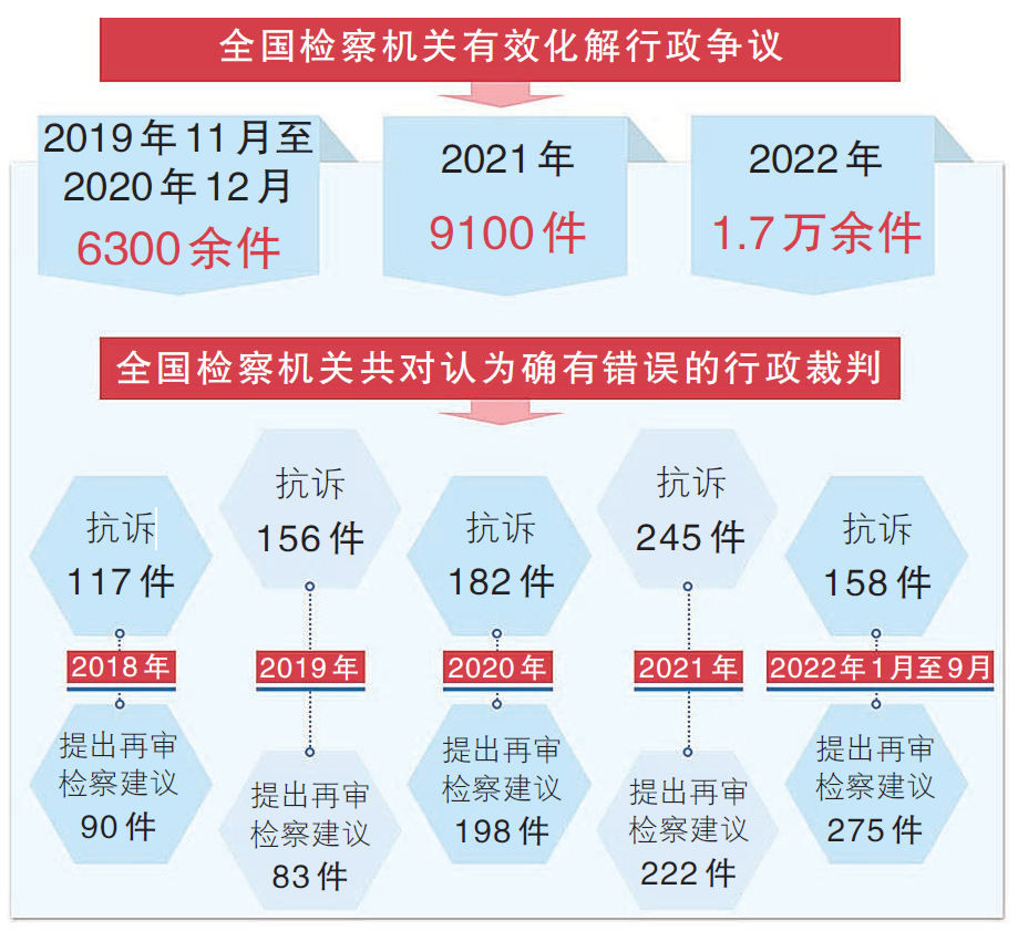 全国检察机关深入贯彻习近平法治思想,自觉践行“一手托两家”“穿透式监督”新理念,构建起诉讼内监督和诉讼外监督并举,以行政诉讼监督为基石,以行政争议实质性化解为牵引,以行政非诉执行监督和行政违法行为监督为新的增长点,上下级院各有侧重、上下联动、全面履职的新格局,实现了行政检察职能从小到大、由虚到实的根本性转变。