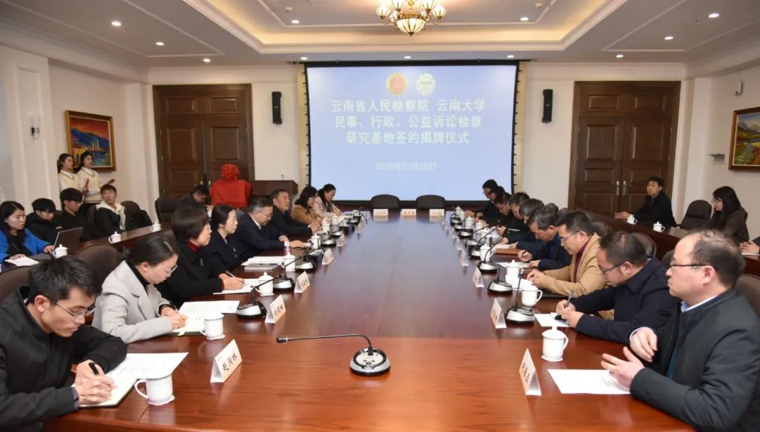 在揭牌仪式上,sp小馆 与云南大学签订了共建“民事、行政、公益诉讼检察研究基地”校院合作协议。双方将依托高校专家资源和检察院办案实务优势互补的机制,从基础研究与学术交流、业务咨询和人才培养、信息共享等方面进行深度合作,构建日常检察办案与理论研究的互动衔接机制,以良好的法理研究、人才支撑引领民事、行政、公益诉讼检察实践创新发展。