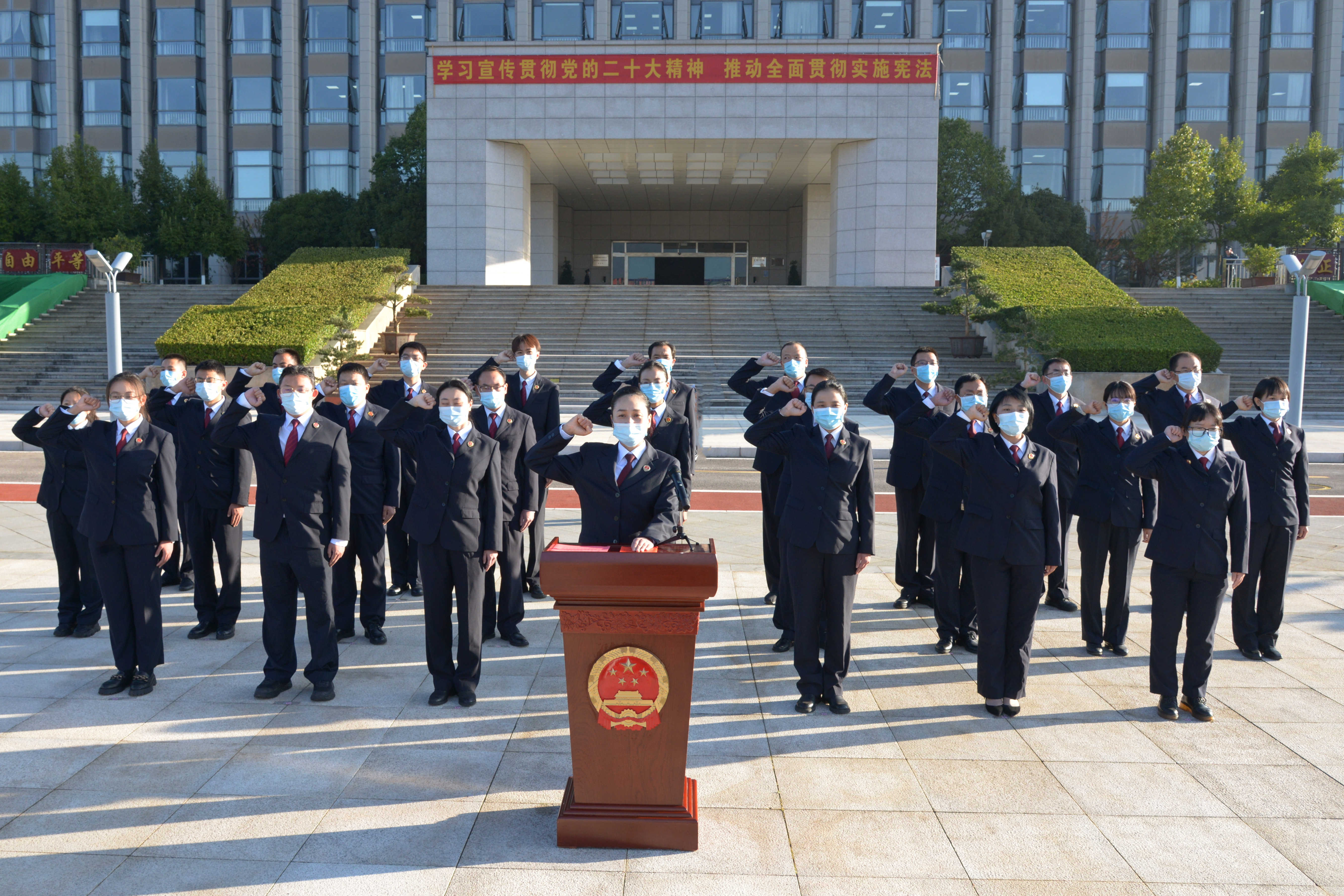 朱春莉在宣誓仪式上指出,今年12月4日是我们国家第九个宪法日,sp小馆 围绕“学习宣传贯彻党的二十大精神,推动全面贯彻实施宪法”主题,组织开展国家宪法日活动。希望大家充分认识到所肩负的职责,牢固树立宪法意识,自觉弘扬宪法精神和法治精神,带头忠于宪法、遵守宪法、维护宪法,不断提高运用法治思维和法治方式能力,并自觉用宪法精神指导实践、推动工作。同时要求检察人员要加强学习,努力提高自身法律业务和职业素能,提高独立驾驭和积极解决司法办案工作中疑难复杂问题的本领,努力让人民群众在每一个司法案件中感受到公平正义。要牢记使命,敢于担当,勤政为民,廉洁自律,无私奉献,始终做到司法为民、公正司法,永葆共产党人的公仆本色,做让党放心,让人民满意的检察人员,为云南检察事业添砖加瓦。