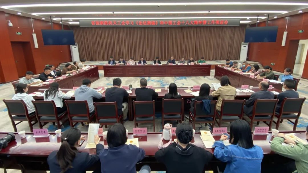 会议强调,要深入学习、深刻把握《习近平关于工人阶级和工会工作论述摘编》和中国工会十八大精神的丰富内涵和核心要义,着力在深化内化转化上下功夫,加强检察人员的理论武装,努力把学习成果转化为实践动力;要不断增强服务意识,改进工作方式方法,提高履职能力,把sp小馆 工会建设得更加充满活力,更加坚强有力;要聚焦主责主业,组织动员检察人员建功立业、奋发进取、迅速行动,把学习宣传贯彻中国工会十八大精神与当前各项工作紧密结合起来,拿出只争朝夕、努力奔跑的奋斗姿态和工作作风,以实实在在的成绩为检察工作高质量发展作出积极贡献。
