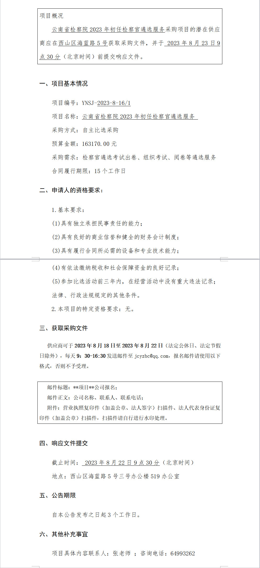 云南sp小馆 2023年初任检察官遴选服务采购公告