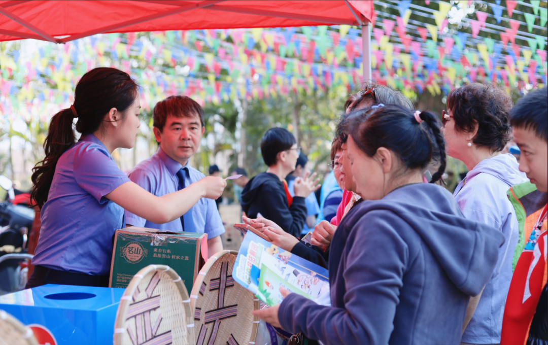 随着音乐的响起,一场浪漫之约拉开了序幕。从傣陶、傣纸、贝叶经制作等非遗代表性项目展示的非遗文创展示区,到集结着勐罕镇民族风情与自然风光的优秀摄影作品展区,再到村民们售卖的土特产品、版纳风味特色小吃的赶摆街,都充满着浓浓的节日氛围。而在文化节的一角,景洪市检察院的普法摊位前同样热闹非凡,成为了一道独特的风景线。