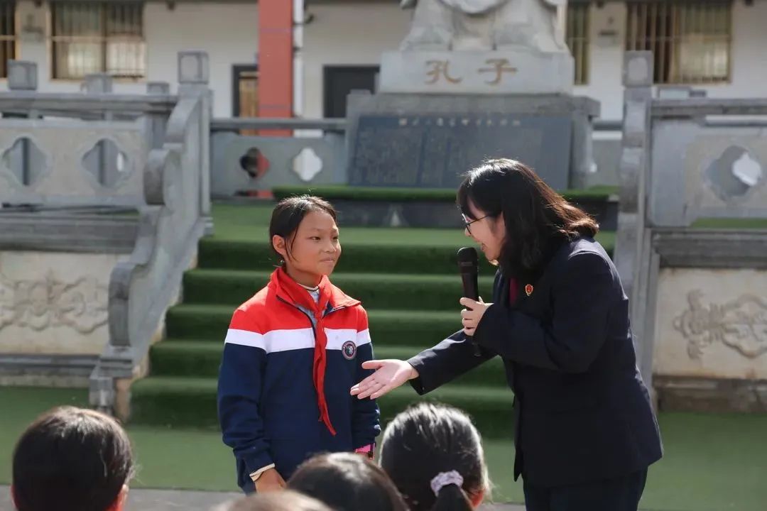 检察人员在为同学们开展预防校园欺凌宣讲时,带领同学们模拟了校园欺凌中“推搡”“排挤”等情景,让同学们体验从“小打小闹”“开玩笑”到慢慢地上升为校园欺凌、暴力的过程。在学校孔子像前讲述了“己所不欲、勿施于人”的道理,告诫同学们要杜绝不良行为,不做“欺凌者”、也不做“沉默者”,争做守法小公民。