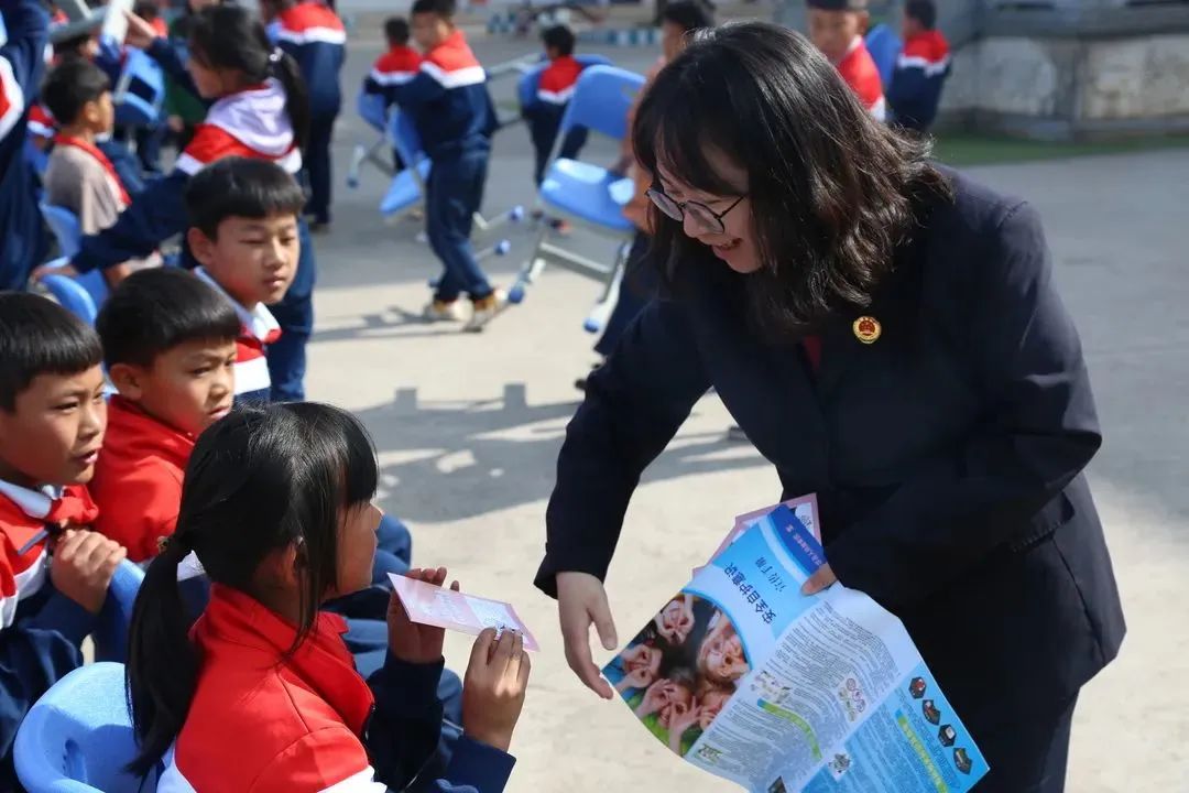 在法治宣讲课程结尾时,检察人员向同学们发放了《家庭教育促进法》《安全自护手册》等普法手册,让法律知识不仅在课堂上言语讲述,还通过图文并茂、简单易记的法律宣传手册让同学们课后强化巩固,增强同学们对法律知识的学习兴趣,努力成为一名知法、守法、懂法的好少年。