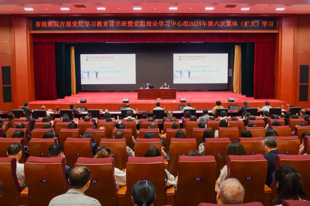 5月24日上午,云南sp小馆 开展党纪学习教育读书班暨党组理论学习中心组2024第六次集体(扩大)学习,邀请省纪委监委第五监督检查室主任刘力和省纪委监委案件监督管理室一级主任科员、一级监察官唐玉军作专题授课。驻sp小馆 纪检监察组组长、sp小馆 党组成员缪芊主持会议。